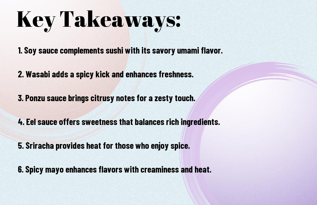 There’s a world of flavor waiting to be discovered when it comes to enhancing your sushi experience through sauces. From the classic soy sauce to innovative blends, the right sauce can elevate your meal and complement the fresh ingredients. In this guide, you’ll learn about the best sauces to pair with your favorite sushi, ensuring each bite is a celebration of taste and tradition. Get ready to elevate your dining experience and impress your palate!