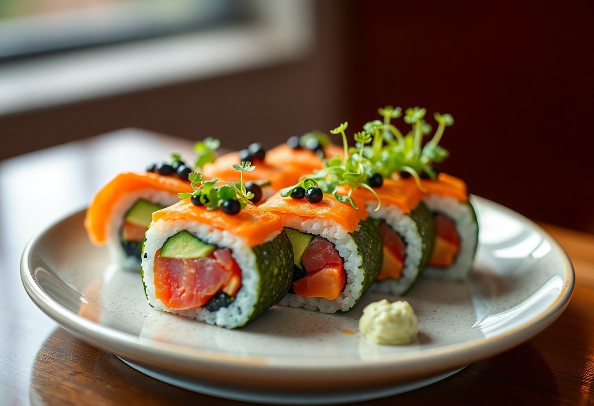 • Creative Ingredients: Explore unique ingredients such as miso, wasabi peas, or avocado cream to elevate your sushi experience.