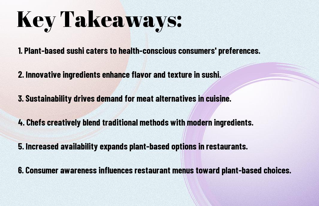 Taking this into account, you have a fantastic opportunity to explore the growing trend of vegan sushi, which not only caters to your taste buds but also aligns with a healthier lifestyle and environmental consciousness. By experimenting with various ingredients, flavors, and techniques, you can create meals that are both satisfying and nourishing. Don’t miss out on trying this innovative twist on a classic dish; your palate will thank you, and you’ll be part of a vibrant culinary movement that emphasizes creativity and inclusivity in dining.