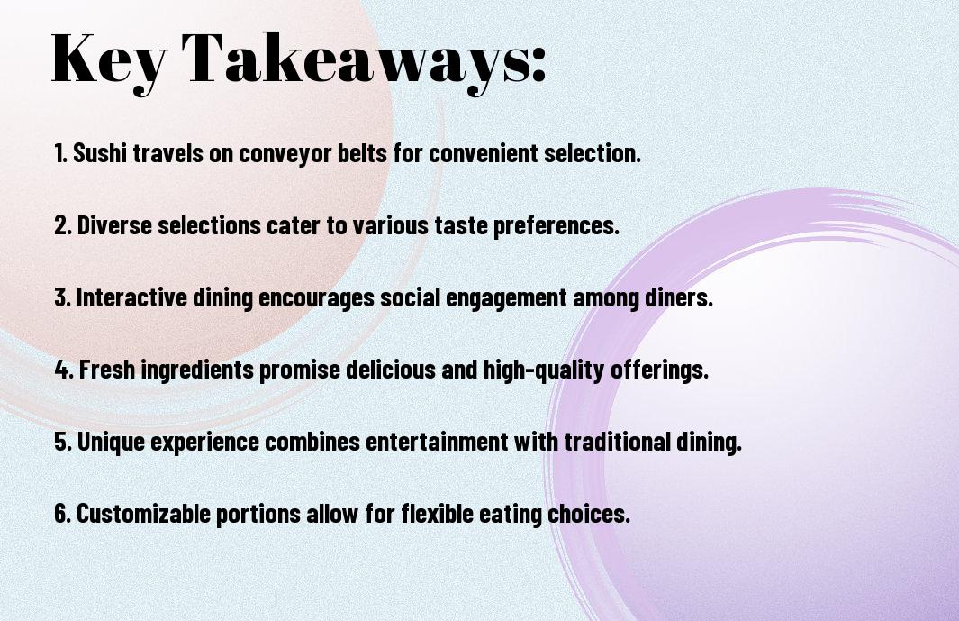 Sushi served in revolving sushi bars highlights freshness by prioritizing high-quality ingredients sourced from local suppliers. Many establishments receive daily deliveries of fish, ensuring that each piece you select is not only visually appealing but also brimming with flavor. The rapid turnover of sushi on the conveyor belt keeps the selection vibrant and varied, allowing you to enjoy everything from classic nigiri to innovative fusion rolls. This focus on fresh ingredients elevates your dining experience and enhances the overall enjoyment of your meal.