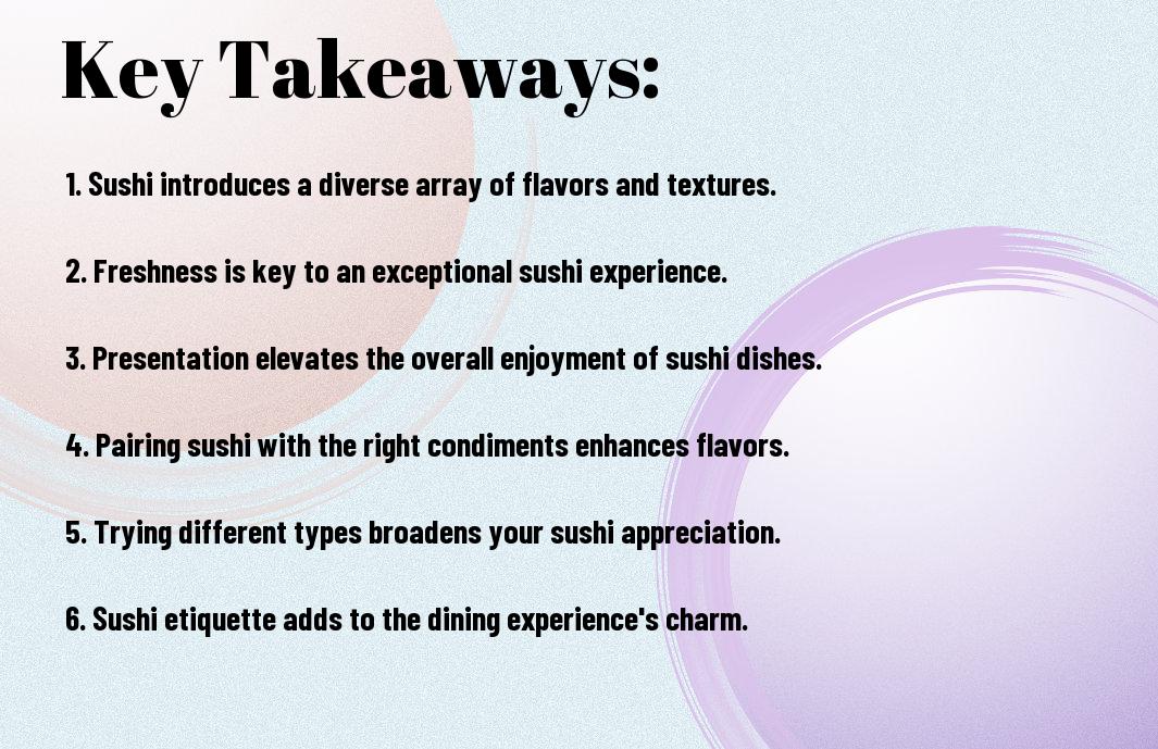 Considering how sushi combines various textures and tastes, your experience is not just about flavor but also an exploration of contrasts. The initial chew of the rice gives way to the tenderness of the fish, while a subtle crunch from the seaweed enhances the moment. As you savor the different elements, your senses awaken to the richness of this dish, transforming your hesitation into delight. Ultimately, that first bite opens a gateway to a culinary adventure you never knew you needed, revealing a world where simplicity meets sophistication.