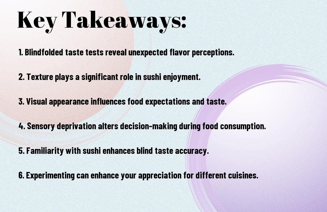 Blindfolded sushi tasting can reveal fascinating insights into your palate and sensory perception. As you begin on this unique culinary adventure, you might be surprised by how much you can identify through taste and texture alone. In this post, you’ll explore the different types of sushi, the characteristics that set them apart, and how your senses play a key role in determining flavors without the ability to see them. Join us as we explore the adventurous world of sushi and challenge your taste buds!